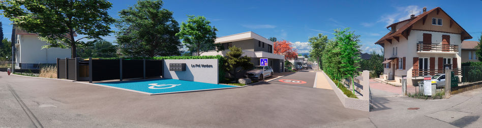 Cette 3D a été créée afin de pouvoir vendre différents lots d'habitation. Plusieurs vues réalistes extérieures permettent aux acheteurs de mieux appréhender leurs achats et son intégration dans le contexte.
